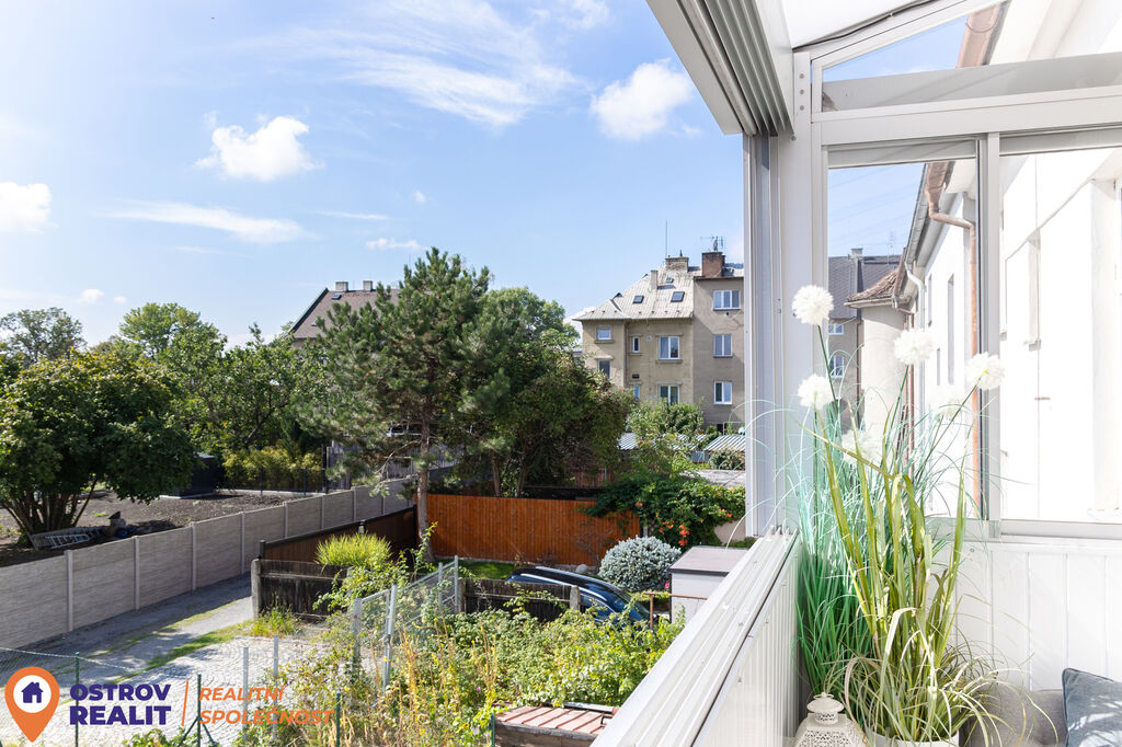 Zasklený balkon o ploše 5,4 m² s výhledem do klidného dvora. Orientovaný do vnitrobloku – ideální místo pro ranní kávu nebo večerní relax.