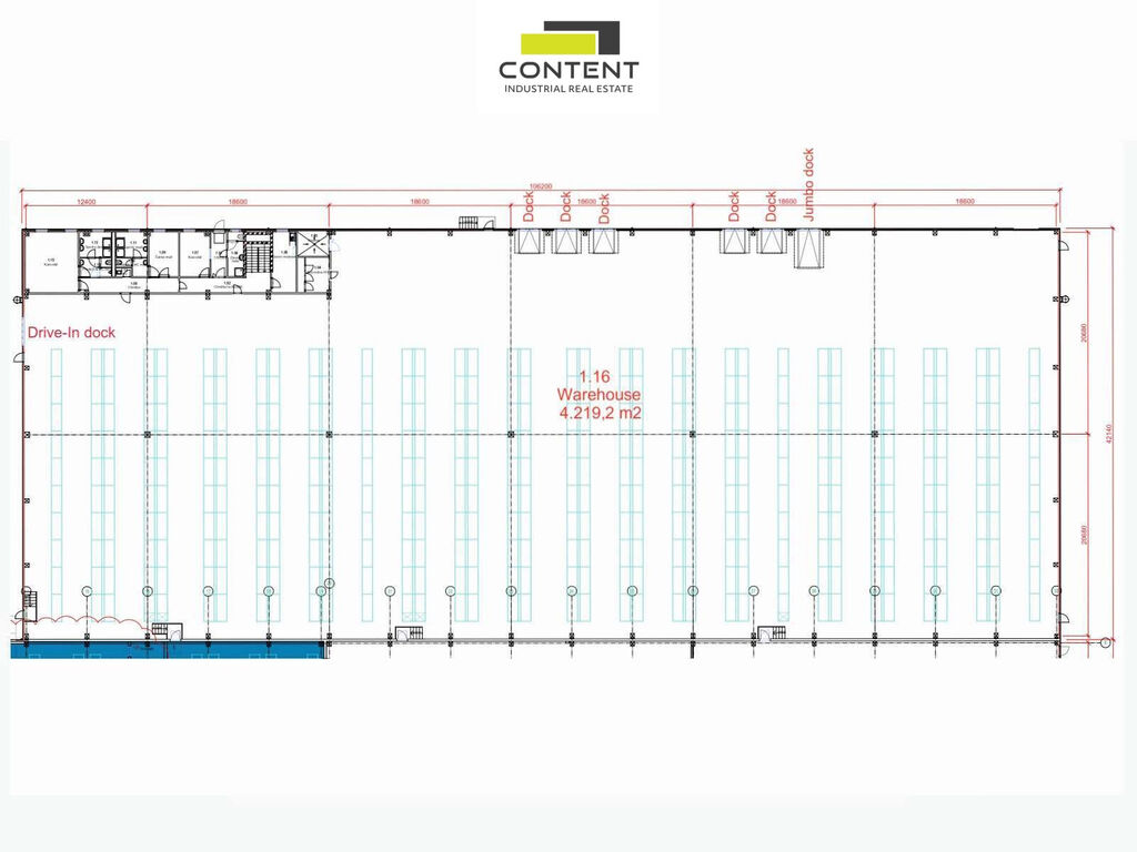 - k dispozici je také další budova o velikosti 3539 m² s čistou výškou 11,5 m