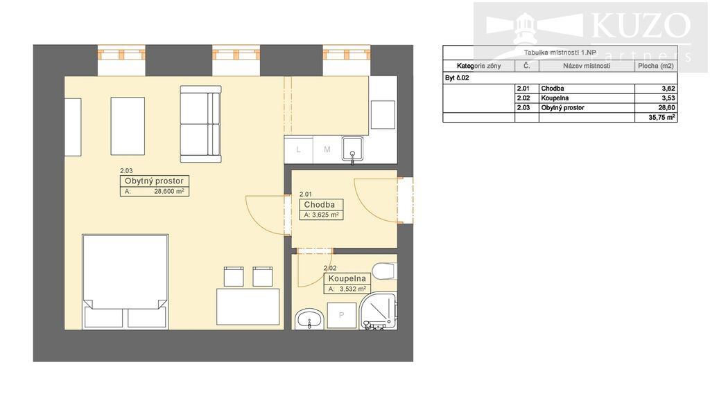 • Byt o výměře 36 m² – cena 3.672.000 Kč