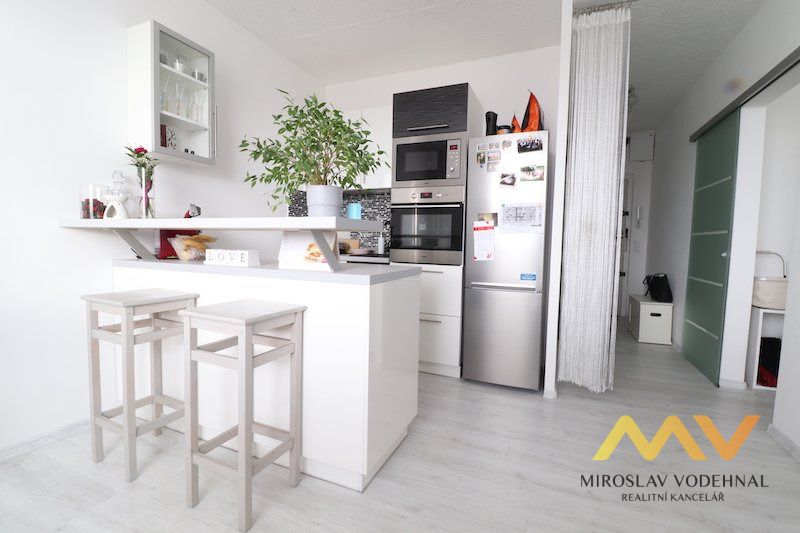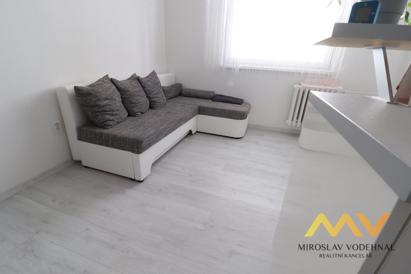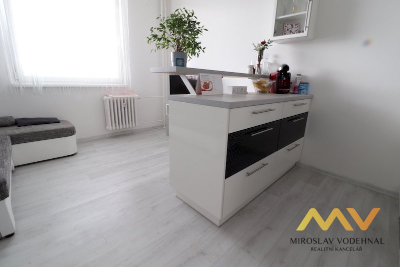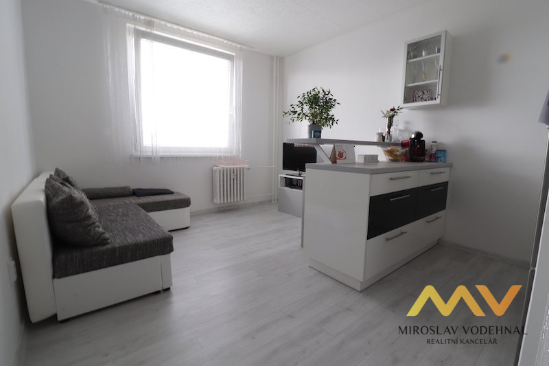 Dispozice: obývací pokoj s kuchyňským koutem, ložnice, koupelna s WC, předsíň, komora, sklepní kóje. Jedná se o velmi pěkný, světlý a částečně zařízený byt po kompletní rekonstrukci. Plastová okna se žaluziemi, nové rozvody, vinylová podlaha. Nová kuchyňská linka se všemi spotřebiči (el. trouba, mikrovlnná trouba, el. varná deska, lednice).