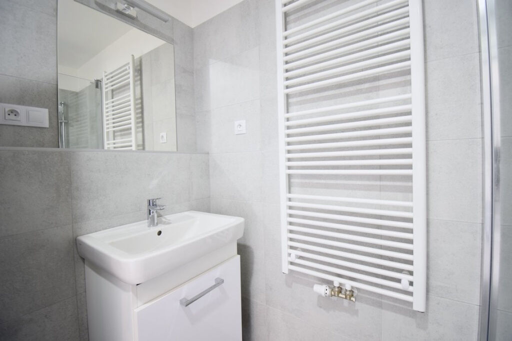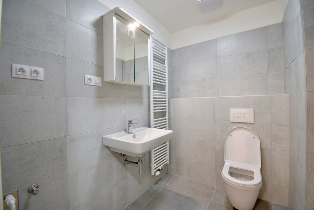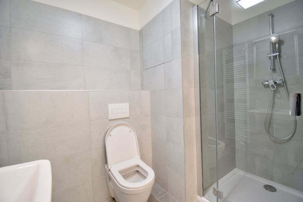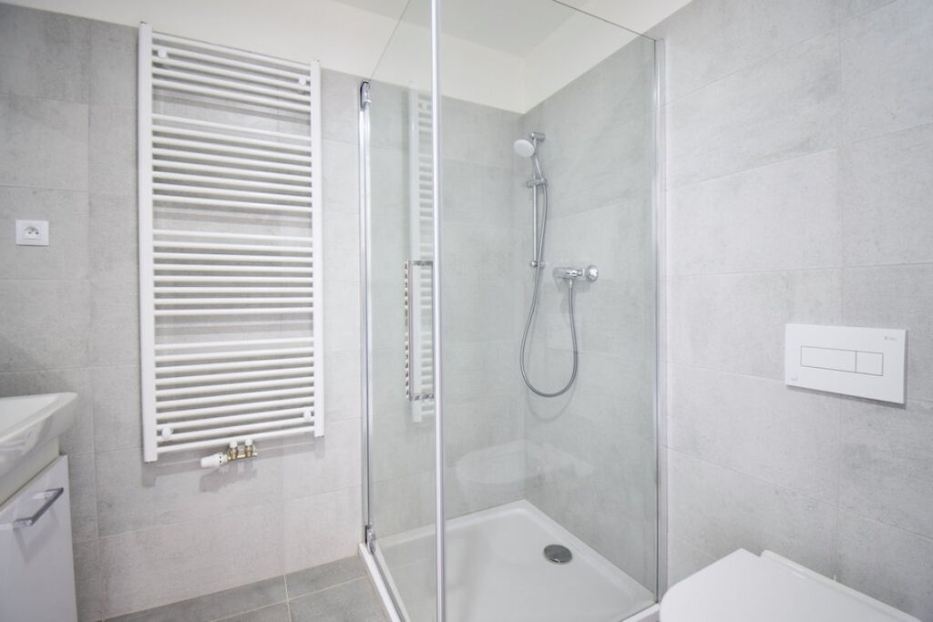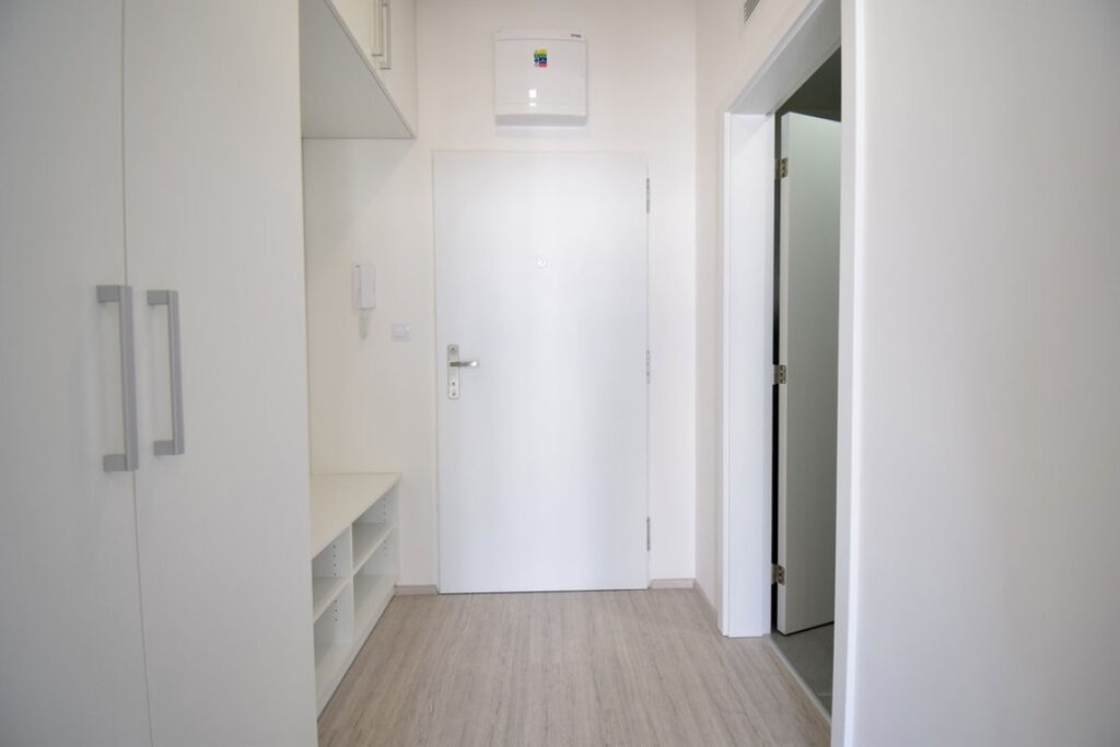 Byt se nabízí bez vybavení, což umožňuje zařízení podle vašich představ. Součástí moderní kuchyňské linky je myčka, elektrická trouba a sklokeramická deska. Krásná koupelna disponuje sprchovým koutem, umyvadlem a toaletou.
