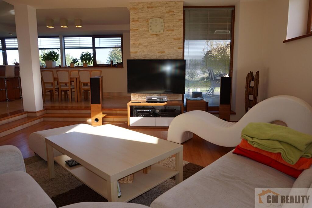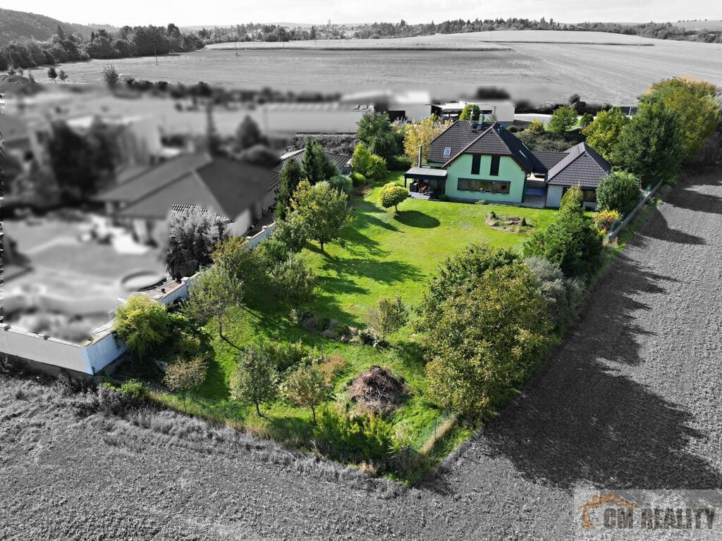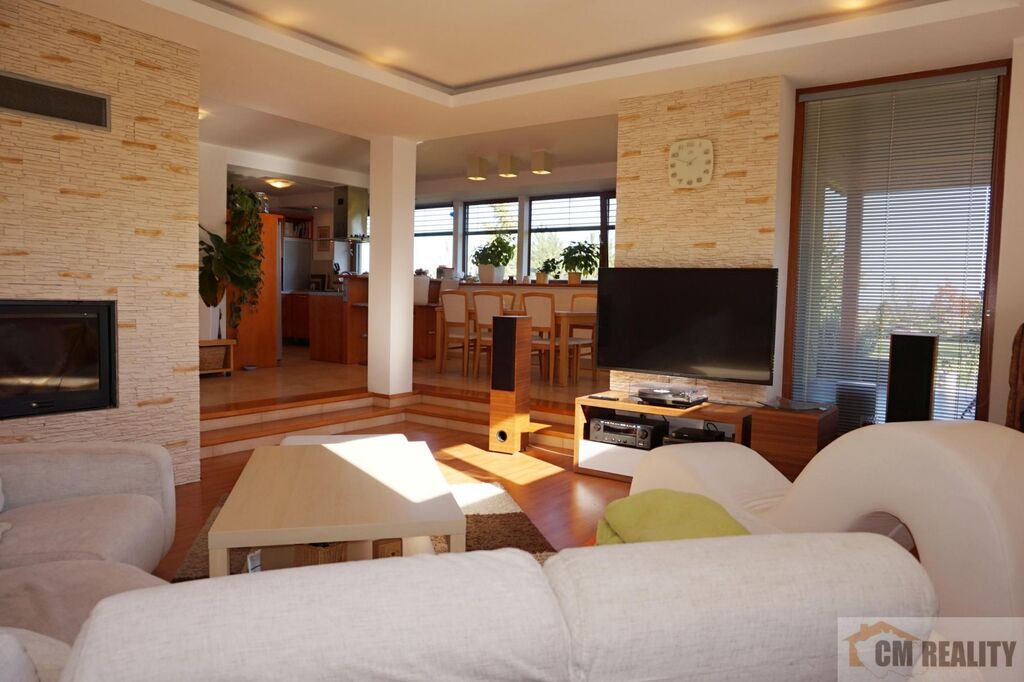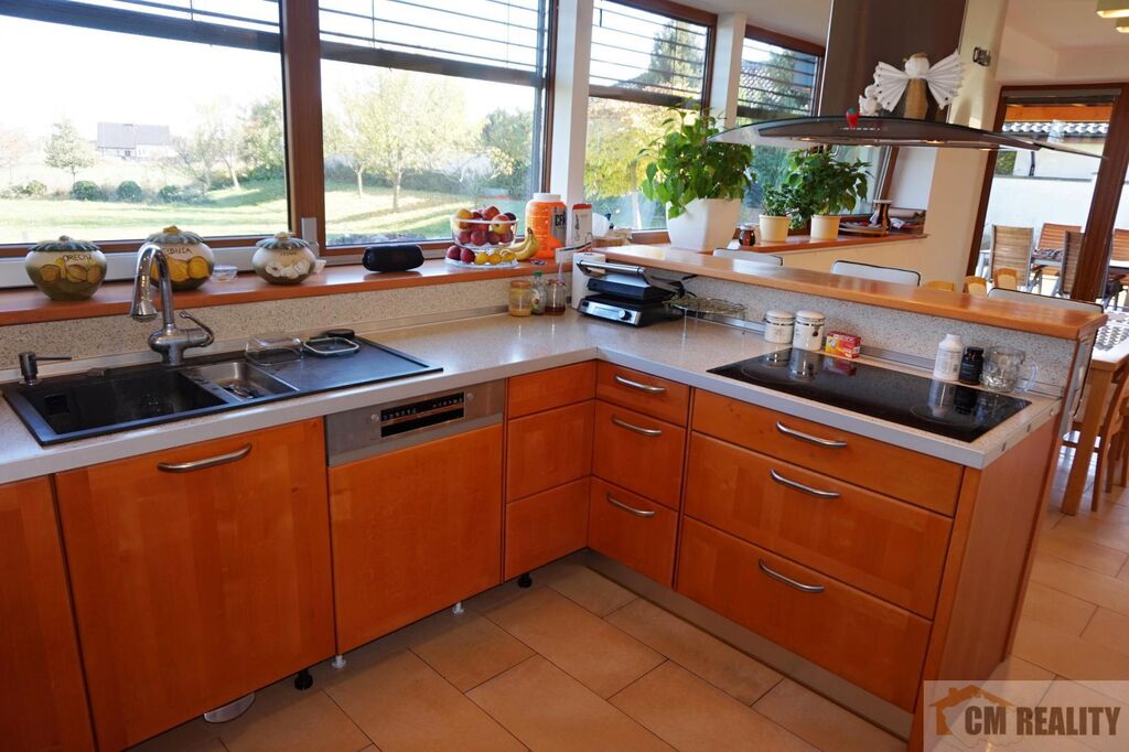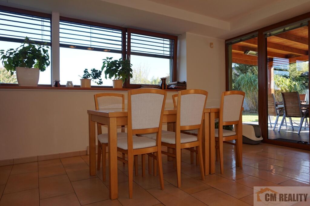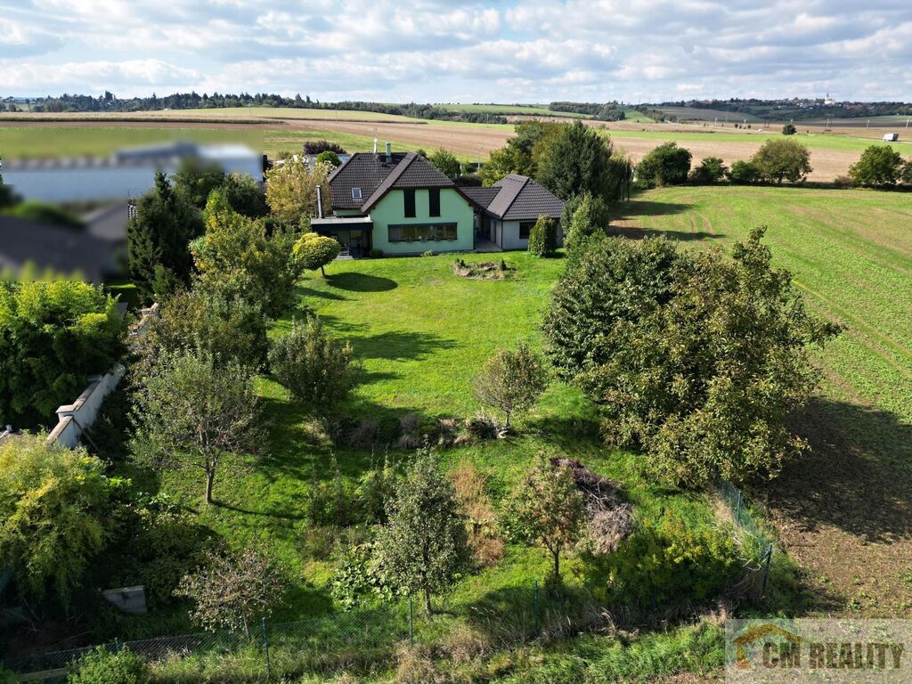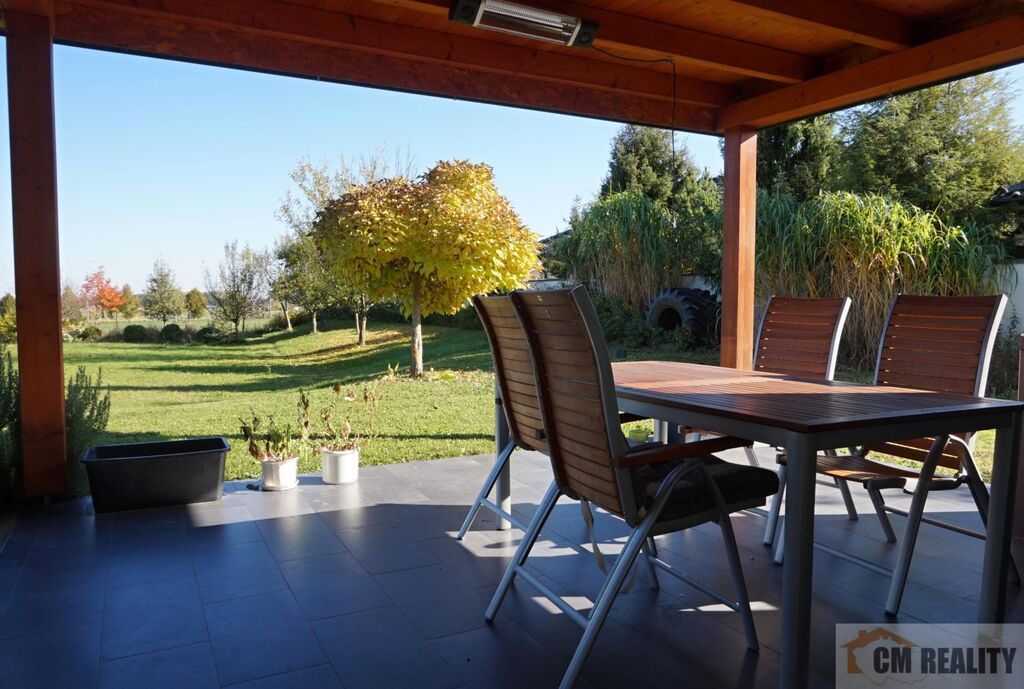 Dům byl kolaudován v r. 2008 a jeho dispozice byla velmi dobře promyšlena. Dům je postaven z keramických tvárnic porotherm, vytápění domu je podlahové pomocí tepelného čerpadla zn. IVT, typ země-voda (zemní kolektor), které slouží i pro ohřev TUV. Dům je vybaven centrálním vysavačem, zabezpečen pomocí EZS, okna jsou plastová, většina opatřena venkovními žaluziemi, střešní okna jsou zn. VELUX. Interiérové dveře jsou obložkové dýhované. V obývacím pokoji posezení v zimním období zpříjemní krb. Jídelní část je dostatečně veliká i pro větší rodinu a z jídelní části je vstup na zastřešenou terasu. Na terase je k dispozici zahradní krb a udírna. Na dům navazuje velká zahrada, která poskytne dostatek prostoru ať již pro Vaše děti nebo k využití pro relaxaci, instalaci venkovní sauny, či zahradničení.