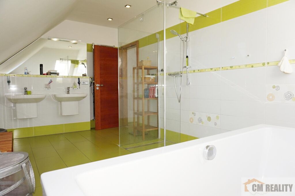 S výhradním zastoupením nabízíme k prodeji zděný rodinný dům o dispozici 6+kk. V přízemí domu se nachází zádveří s vestavěnými skříněmi a botníkem, prostorná vstupní hala se schodištěm, obývací pokoj s jídelnou a kuchyňským koutem, ložnice, koupelna s WC a technická místnost. V obytném podkroví se nachází 3 ložnice, pracovna/pokoj pro hosty (taktéž může sloužit jako šatna) a prostorná koupelna s vanou a sprchovým koutem. WC je samostatné. Z chodby v podkroví je vstup na půdu. U domu je prostorná dvojgaráž s možností parkování i dodávky, na kterou navazuje samostatná koupelna s přípravou pro sprchový kout a WC a prostorná samostatná místnost, která může sloužit jako posilovna, sklad kol, herna apod. Místnost navazující na garáž je částečně podsklepena. Zastavěná plocha garáže s příslušenstvím je 82 m2. Před garáží pohodlně zaparkují 3 vozy.