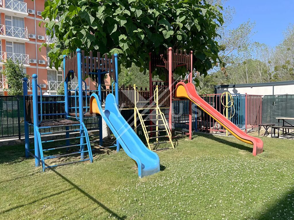 V areálu je k dispozici bazén, upravený pozemek, ostraha a parkování zdarma. Letiště v Burgasu je vzdáleno cca 30 minut autem, k moři je to 15 minut pěšky.