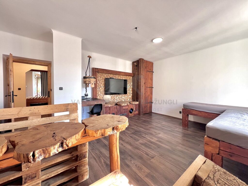 Originální útulný byt 2+kk (60m2) s krbem a pergolou
