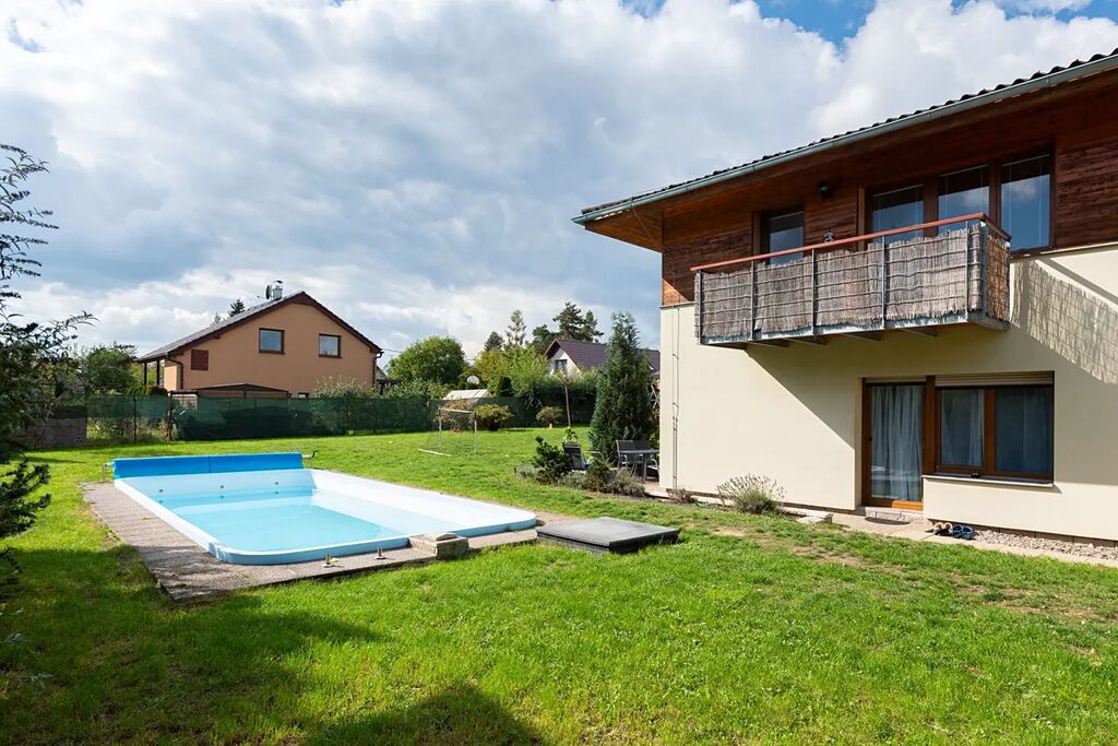 k dispozici celá zahrada s venkovním bazénem a dětským hřištěm –
