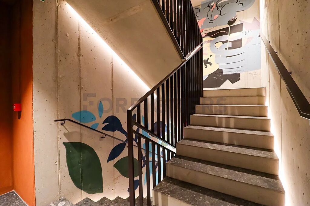 Ateliér je situován v moderním domě s výtahem a zaujme kvalitním provedením v industriálním stylu, kombinujícím betonové prvky, teplé barvy a designové osvětlení.