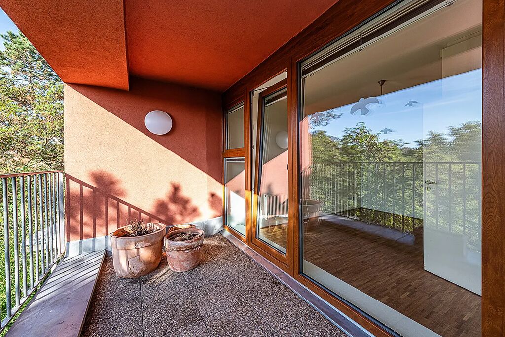 Nabízíme k prodeji mimořádný byt o dispozici 2+kk s rozsáhlou krytou terasou; Plocha: 46 m² + lodžie 7,9 m² + sklepní kóje cca 3,5 m².