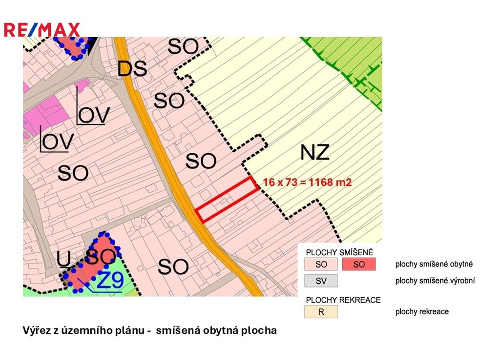 •	Využití: zástavba rodinným domem, zahrada, orná půda