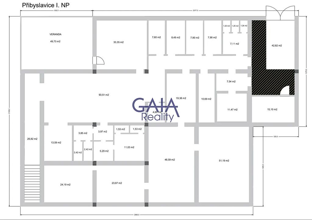 Ve výhradním zastoupení majitele si Vám dovolujeme nabídnout nebytové prostory o výměře cca 500 m² v obci Přibyslavice, okres Třebíč. Jedná se o rozestavěný objekt, původně určený k provozu hospody, který je nyní ve fázi hrubé stavby. Pro budoucí užívání bude nutné vyhotovit Prohlášení vlastníka budovy, na jehož základě se objekt rozdělí na dvě samostatné jednotky. V současné době mají oba objekty společné inženýrské sítě, do budoucna bude nutné zřídit samostatné přípojky nebo odpočty. K nabízené části náleží septik, rozvody elektro jsou pouze částečně provedeny a vytápění ani rozvody vody zatím nejsou zřízeny. Střecha je v dobrém stavu, zdivo provedeno tradičním vyzdíváním. Stavební práce nebyly dokončeny, nemovitost tak nabízí možnost realizace podle vlastních představ. Využití je možné například pro provoz restaurace, řemeslné dílny, služeb nebo jako skladovací prostory. Nemovitost se nachází na parcele St. 352, jejíž součástí je stavba č. p. 99 – občanská vybavenost. Obec Přibyslavice leží v okrese Třebíč a nabízí klidné prostředí s dobrou dostupností do okolních měst. V případě zájmu o prohlídku kontaktujte makléře. Prezentované informace byly nabyty v dobré víře od vlastníka nemovitosti a naše společnost je zprostředkovává, co by data informačního charakteru, za jejichž správnost a úplnost nenese odpovědnost. RK uvádí, že průkaz energetické náročnosti budovy nebyl doposud majitelem předložen, resp. je ve stádiu zpracování. V souladu s právní úpravou proto RK uvádí energetickou třídu G.