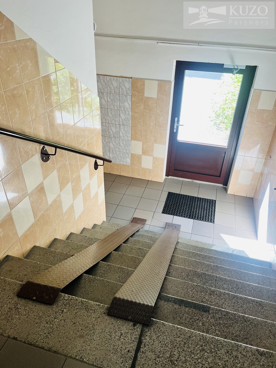 K bytu náleží také sklepní prostor o výměře 2 m², který poskytuje další úložné možnosti a také společné prostory k uskladnění kol.