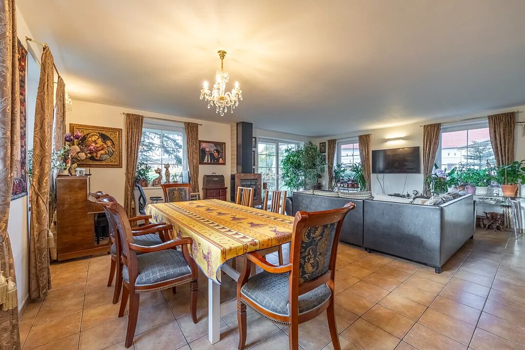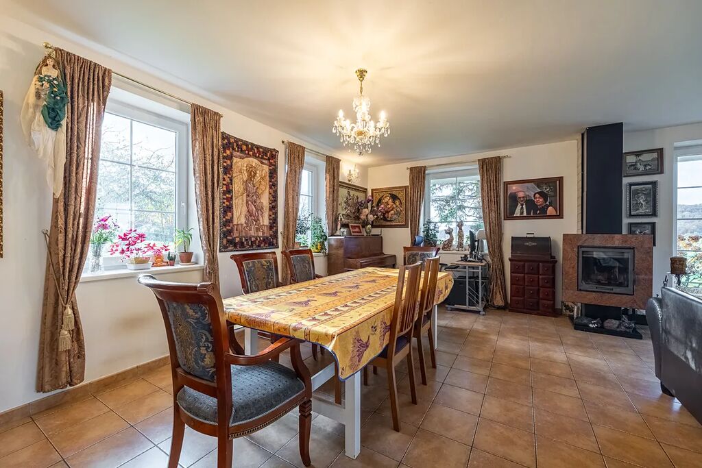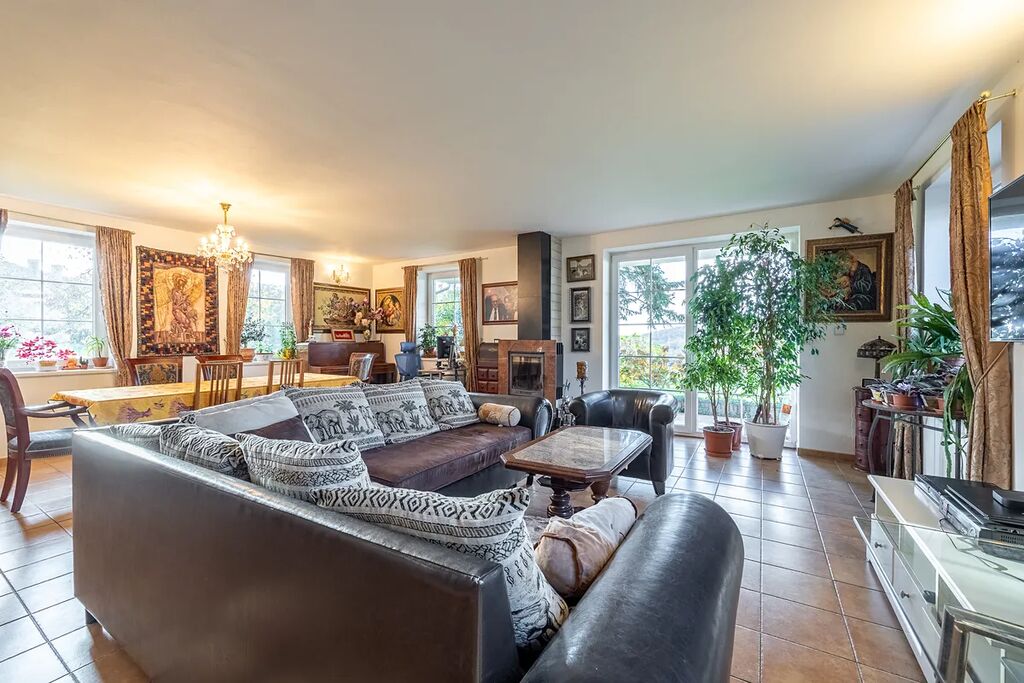 - Rodinný dům o dispozici 7 +1, užitná plocha 304 m², Obývací pokoj o ploše 45 m² s krbem a nádherných výhledem, dále