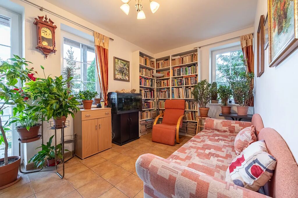 6 samostatných neprůchozích pokojů 25m², 38m², 16m², 12m², 16m² , pracovna 13m², 4 koupelny, šatna 6,7m², technická místnost. V suterénu domu se nachází historický klenutý sklep.