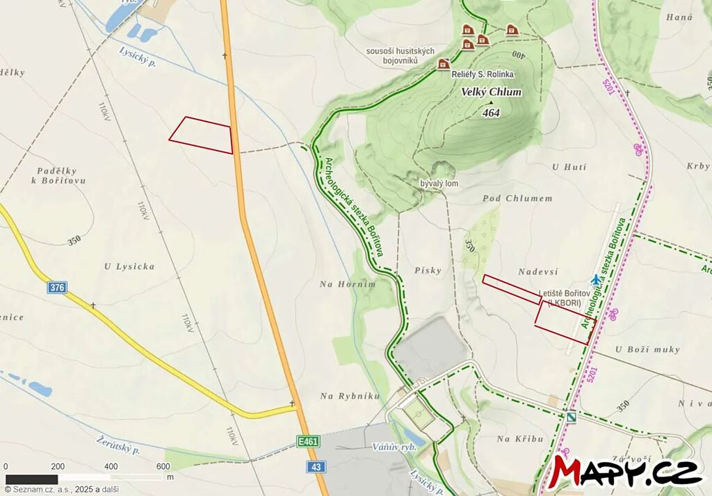 Parcely 2705, 2706, 2707 tvoří územní celek, jsou přístupné ze silnice a mají velmi dobrou bonitu. Na hranici pozemku vede Archeologická stezka Bořitova k Sousoší husitských bojovníků. Parcela č. 2706 je součástí Letiště Bořitov (LKBORI).
