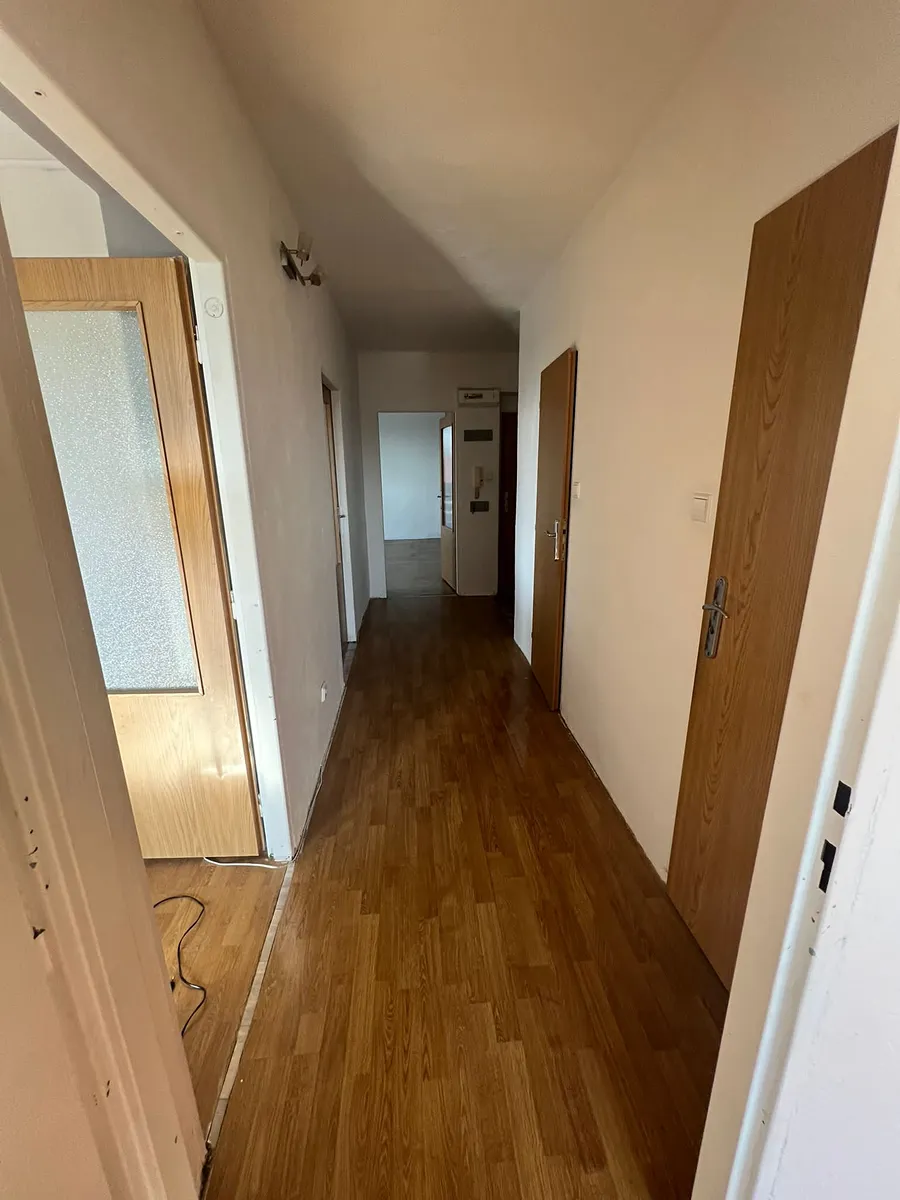 V bytě se nachází vstupní chodba, kuchyň, obývací pokoj, ložnice, pokoj, koupelna s vanou a WC.