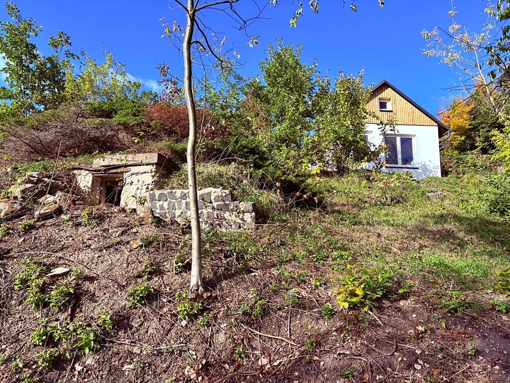 Na pozemku najdete ovocné stromy (ořech, jabloně, třešně, švestky), zděnou udírnu, chatku na nářadí a další sklep ve svahu.