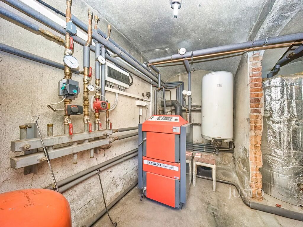 Dům má více možností vytápění, podle aktuální volby majitele. Jedno z nich je vytápění pomocí kotle na TP na dřevoplyn s akumulačnímu nádržemi, další možnost je využití plynového kotle. Ohřev teplé vody je řešen kombinovaným bojlerem( kotel na tuhá paliva nebo elektřina) nebo plynovým kotlem. Vše řídí termostat v domě a lze kombinovat podle potřeby.