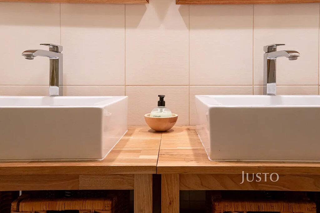 ● Koupelna je vybavena dvojumyvadlem, prostornou sprchou, toaletou a pračkou.