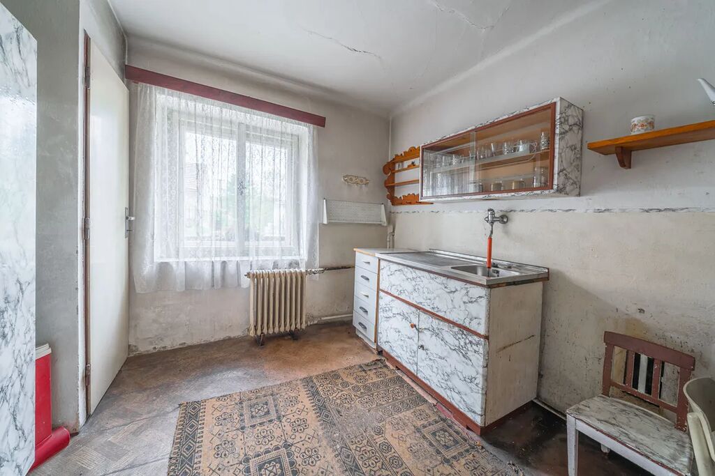 Pozemek má 1 169 m² a tvoří jej dvoupatrový rodinný dům 6+2 (147 m² + půda 74 m²), dále hospodářsko-technická budova cca 200 m² a stodola (60 m²) určená k rekonstrukci. Dům je v původním, plně funkčním stavu, napojen na elektřinu, vlastní studnu a jímku. Vytápění zajišťuje kotel na tuhá paliva, ohřev vody bojlerem. Parkování je možné na dvoře.