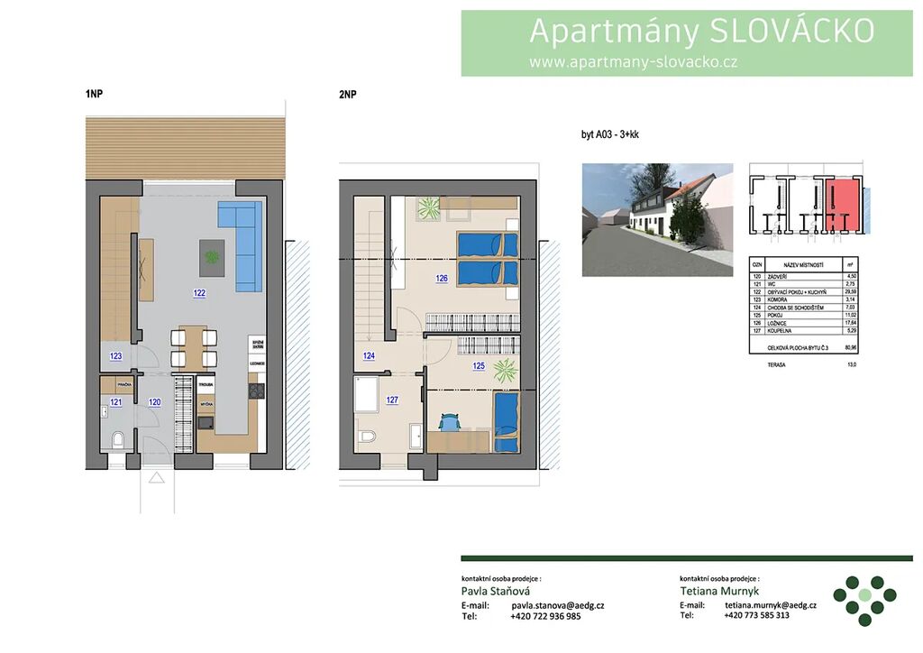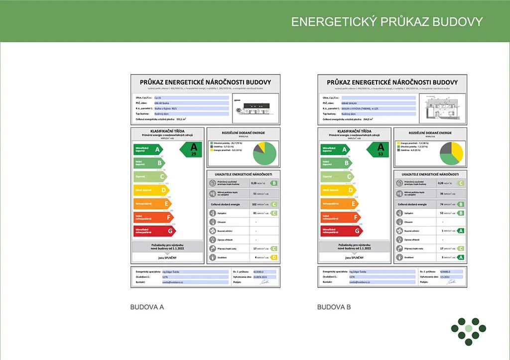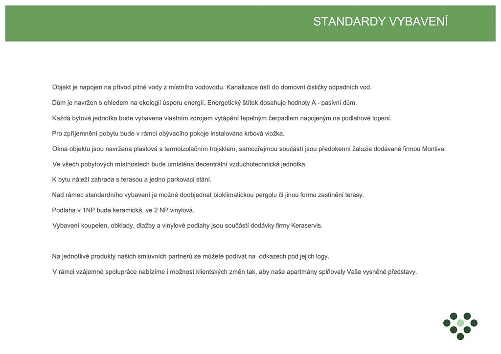 Ve výhradním zastoupení majitele Vám nabízíme prodej nových apartmán. domků s terasou, zahrádkou a 1 parkovacím stáním, v malebné vesničce v obci Skalka u Kyjova. Tato vinařská oblast s romantickým okolím, stráněmi a údolími se nachází asi 6 km východně od Kyjova v okrese Hodonín. Předmětem prodeje jsou menší, sousedící RD v bytov. budovách A a B: Budova A disponuje třemi mezonet. apartmány, každý o vel. cca 80 m2, budova B dvěmi mezonet. apartmány o vel. cca 93m2. Všechny disponují terasou, 15m2, zahradou, cca 200 m2 a parkovacím stáním. Možnost objednání bioklimatické pergoly, či jiné formy zastínění terasy. Stavba je navržena s ohledem na ekologii a úsporu energií, tedy s klasif. třídou "A", (PENB). Připojení na přívod pitné vody, kanalizace, vlastní zdroj vytápění tepelným čerpadlem napojeným na podlahové topení, krb, plastová okna - trojskla s předokenními žaluziemi, decentralizované rekuperační jednotky. Cena každého z apartmánů je 48.125 Kč/m2 + DPH ve stavu shell and core, cena včetně RK, právního servisu i AÚ. Konkrétní specifikace stavu shell and core na požádání v RK. Velmi doporučuji prohlídku, bydlení v novém, v místě obklopeném přírodou a s většími městy na dosah. Předpokládaný termín kolaudace 9/25. Další informace k projektu při osobní prohlídce. RK nabízí možnost vyřízení výhodného hyp. úvěru se zárukou vrácení rezervačního poplatku v případě neúspěšné žádosti o hypotéku. Prohlídky po domluvě možné i o víkendu.