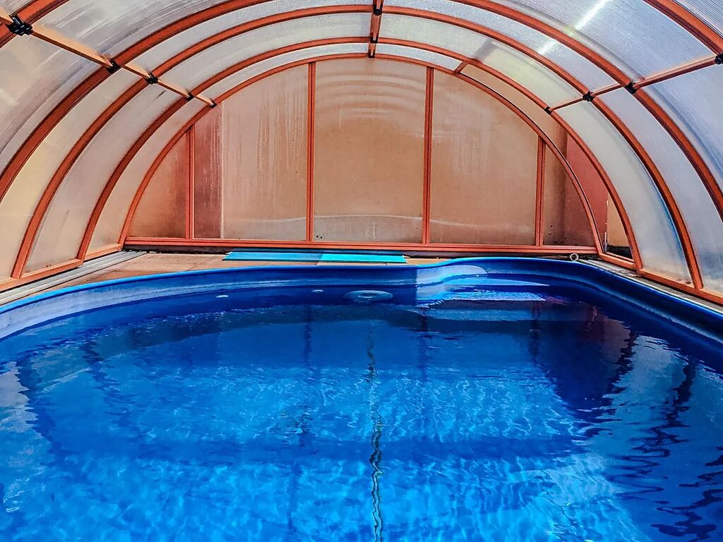 Zahrada o rozloze 385 m poskytuje dostatek prostoru pro odpočinek i volnočasové aktivity. Najdete zde vyhřívaný krytý bazén, prostornou pergolu a zahradní kuchyni s grilem, ideální pro setkávání s přáteli a rodinou.