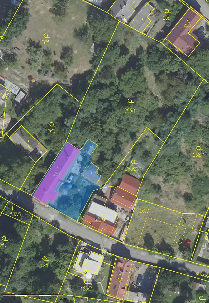 Přilehlý stavební pozemek: 1 910 m² (částečně ve svahu)