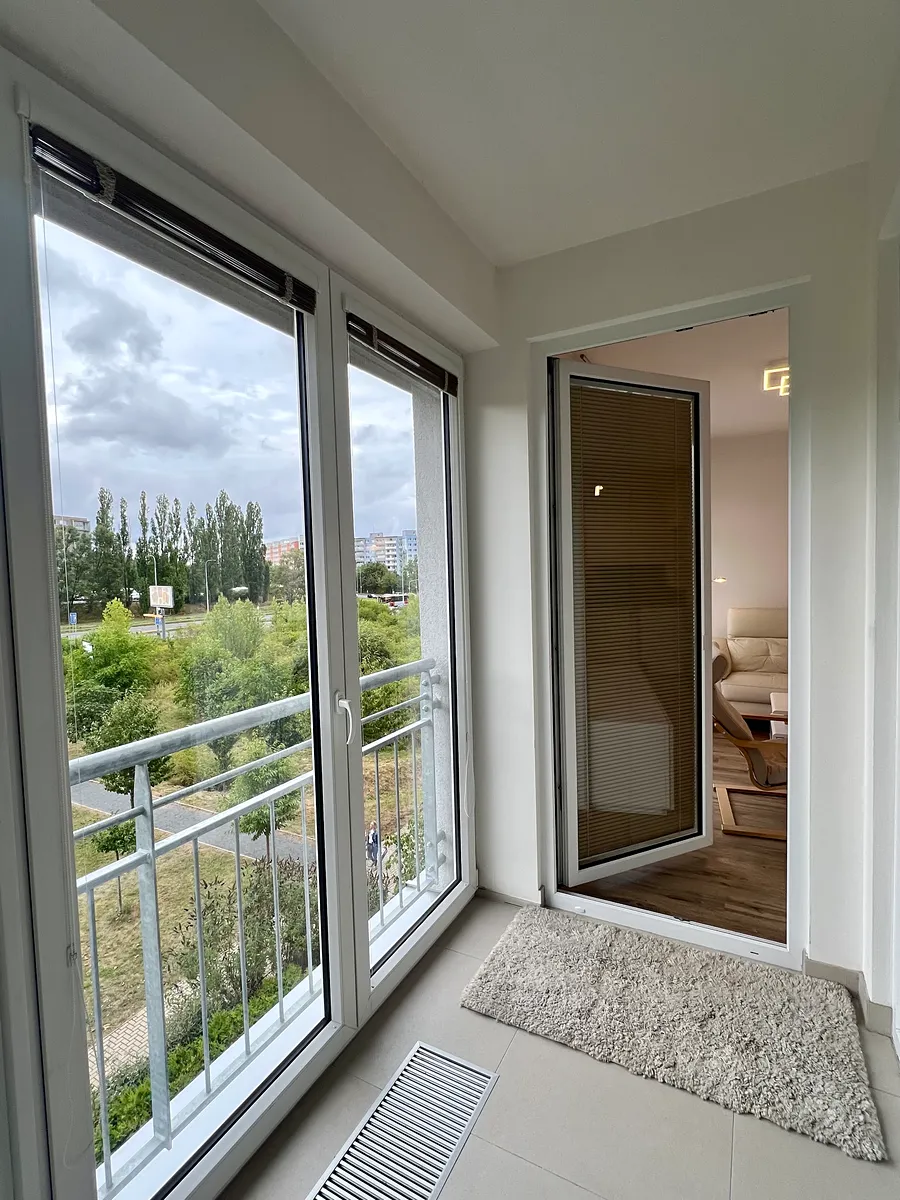 Skvěle dispozičně řešený byt o celkové ploše 73 m2 se nachází ve 3. nadzemním podlaží čtyřpatrového domu s výtahem. Nabízí prostorný obývací pokoj s kuchyní (28 m2), ložnici (14 m2), dětský pokoj (10 m2), koupelnu s prostorným sprchovým koutem, umyvadlem a WC a další samostatnou toaletu. Zajímavým prvkem bytu je zasklená lodžie (5 m2), která je přístupná ze všech pokojů a díky vlastnímu vytápění může fungovat jako další plnohodnotná místnost a plnit například funkci pracovny.