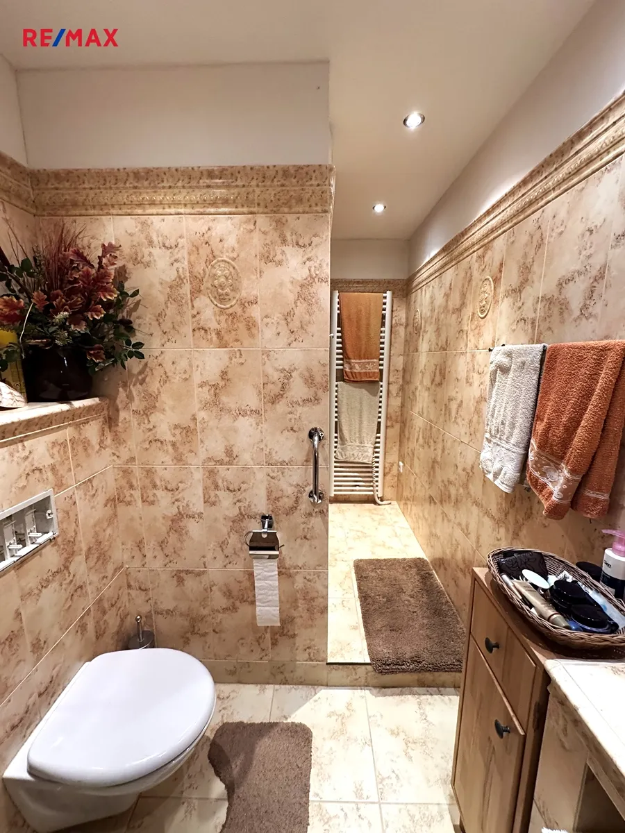 Byt má dva samostatné balkony, jeden je přístupný z pracovny (12,25m2), druhý z ložnice (15,75m2). Nejprostornější je obývací pokoj (19,38m2). Kuchyň (10,15m2) je dostatečně prostorná i k posezení u stolu, v lince je zabudována myčka a pračka. Sporák je jediný spotřebič na plyn. Z chodby je přístup na vkusně zrekonstruovaný prostor koupelny se sprchovým koutem a WC. K bytu náleží klasická sklepní koje 1,5m2. Okna mají stínící žaluzie, okna sloužící k větrání jsou opatřena sítěmi proti hmyzu.