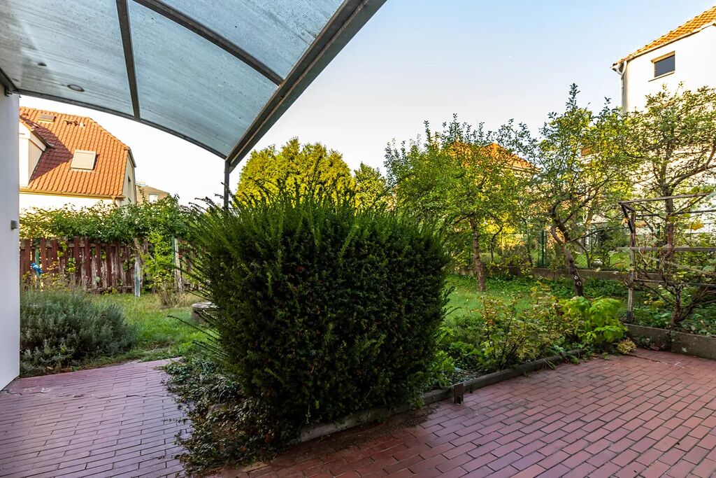 Na zahradě je studna, sloužící ke kropení a vzrostlé stromy (jabloně, meruńka, slíva, rybízy, maliny a vinná reva).