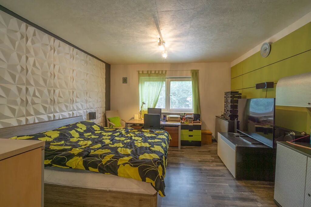 Dům je rozdělen na dvě samostatné bytové jednotky, které lze v případě potřeby snadno propojit. Každá jednotka má vlastní vstup přímo ze zahrady, což zajišťuje maximální soukromí i flexibilitu využití. Na udržované zahradě se navíc nachází příjemná pergola, ideální pro letní posezení s rodinou či přáteli. K domu náleží garáž o výměře 24 m2. Parkování je bezproblémové rovněž před domem.