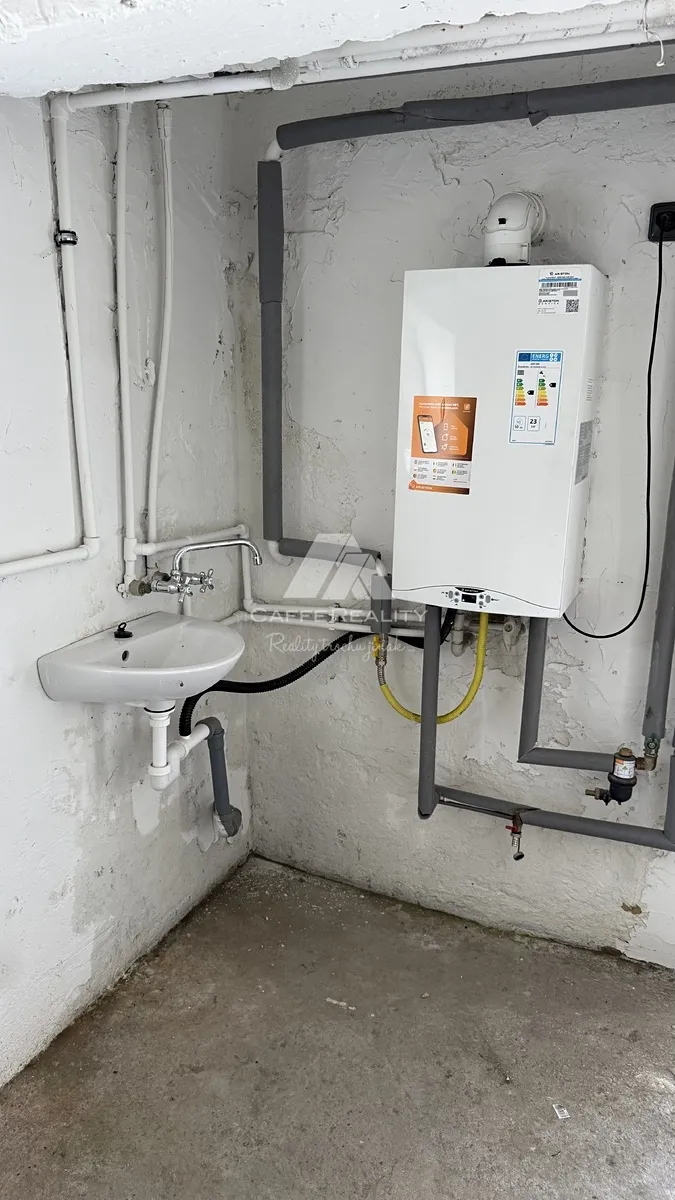 Suterénu domu se nachází garáž, sklep, kotelna - topeni ústřední, nový plynový kotel.