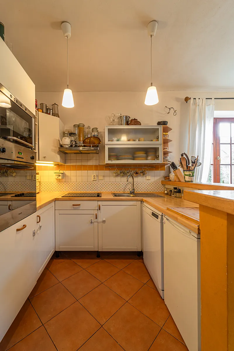 Na pozemku je k dispozici parkování pro pět vozidel. Aktuální vybavení domu zajišťuje pohodlné bydlení ihned po koupi, aniž by bylo nutné provádět další větší úpravy.