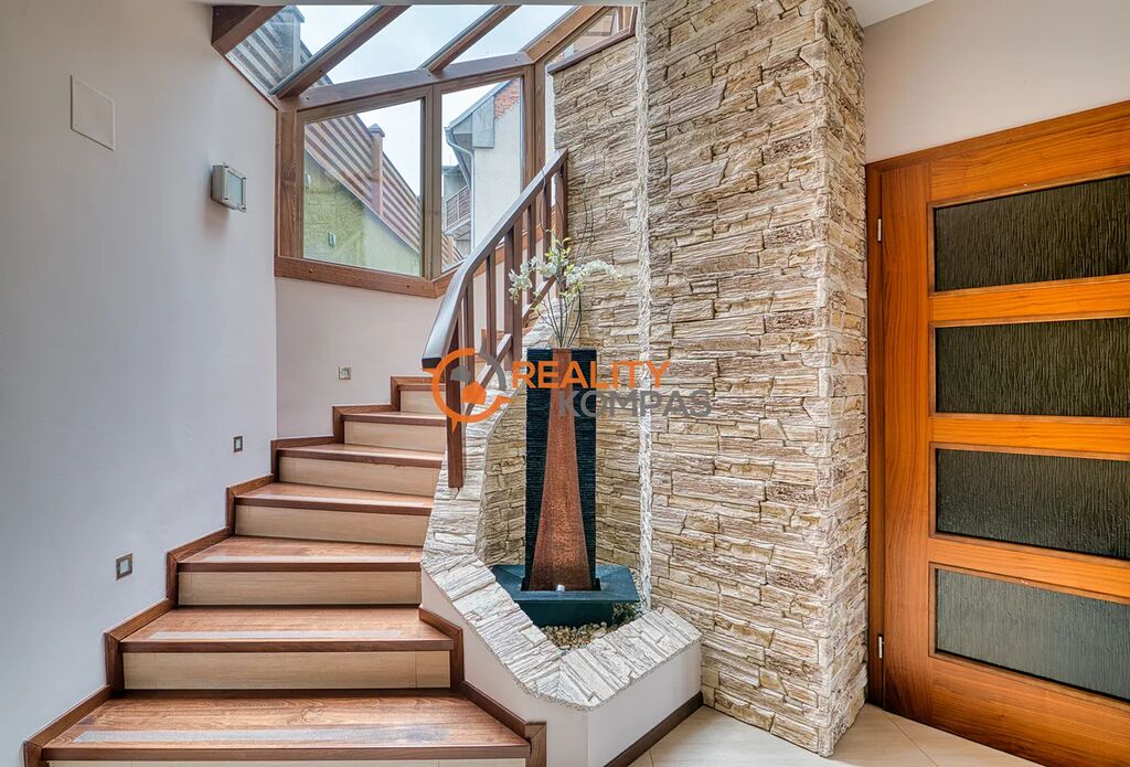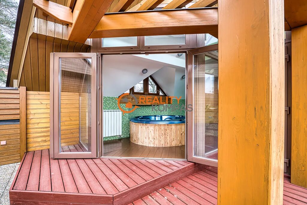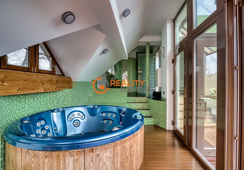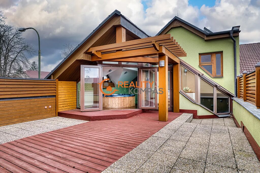 Samotný dům nabízí dispozici 4+1 a je dvoupodlažní. V přízemí domu se nachází vstupní hala, kuchyně s jídelnou propojená s obývacím pokojem, ložnice se šatnou, prostorná koupelna s WC a bidetem, oddělené WC. V patře domu se nachází 2 oddělené pokoje ( 1 se šatnou), koupelna s vanou a WC, technická místnost. Dům nadchne relaxační zónou - na terase ( cca 80m2 ) je v prosklené části domu zabudována vířivá vana zn. Jacuzzi, tato část je pro pohodlí také vybavena sprchovým koutem a WC. Terasa je také místem pro trávení společných chvil s přáteli. Součástí prodeje domu je jeho plné vybavení, vše v novém, případně minimálně používaném stavu… Podlahové vytápění ve všech místnostech, doplňkové vytápění krbem v obývacím pokoji, který dodá v zimních dnech tu správnou atmosféru, solární kolektory v kombinaci s kondenzačním kotlem ohřívají jak vodu pro vytápění, tak vodu v jacuzzi a TUV – máme tedy nízké náklady na bydlení. K domu náleží garáž pro 2 auta.