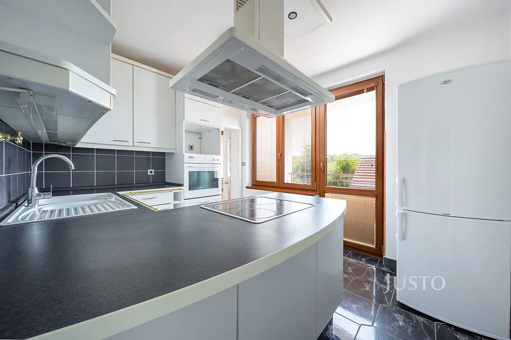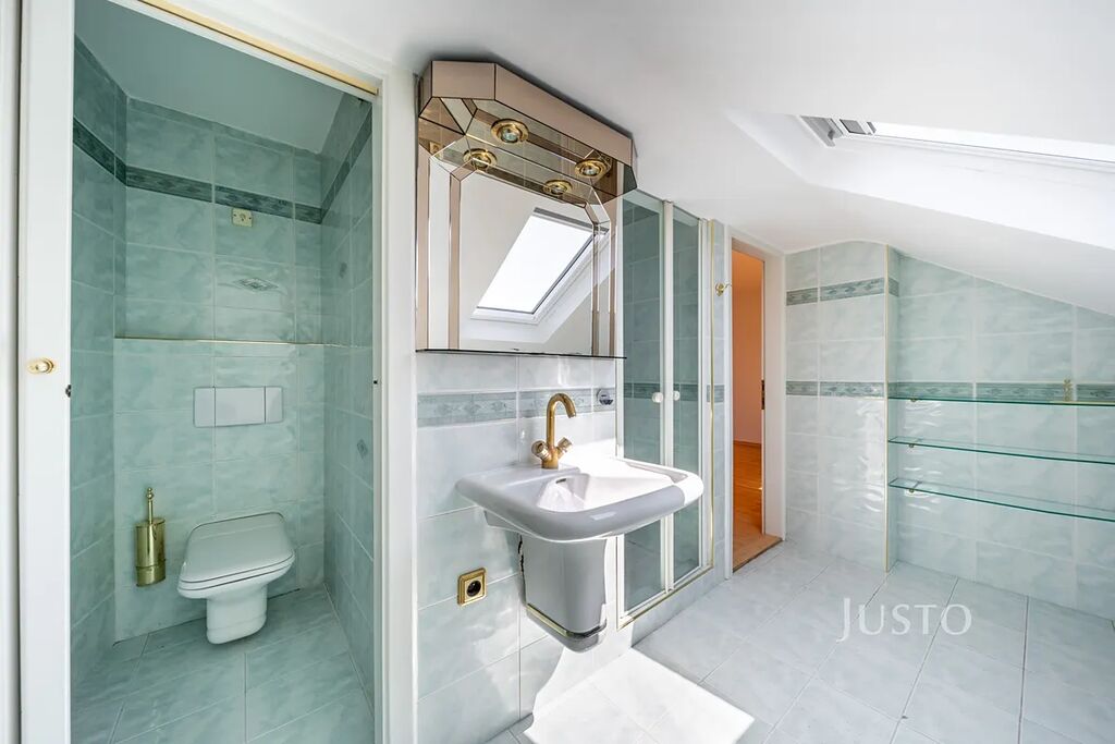 Dispozice bytu je velmi praktická. V první úrovni se nachází vstupní chodba, samostatná koupelna a toaleta, prostorná kuchyň, šatna a tři samostatné pokoje. V podkroví je pak velký obytný pokoj, který je doplněn o druhou koupelnu s toaletou. Celkově byt nabízí dostatek prostoru pro rodinu i jednotlivce, kteří hledají komfortní bydlení s možností oddělených pracovních či relaxačních zón.