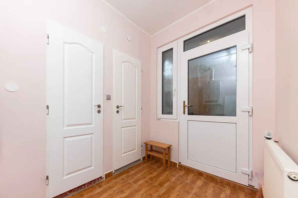 Okna v domě jsou plastová se žaluziemi, podlahy tvoří dlažba v kombinaci s vinylem a plovoucími podlahami. Topení je plynové.