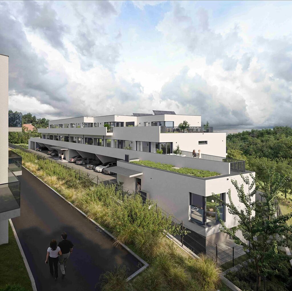 Na střeše rezidence se budou nacházet fotovoltaické a solární panely. Díky nim nejen snížíte náklady na energie, ale také společně přispíváme k ochraně životního prostředí. Tyto technologie zajišťují, že váš nový domov bude energeticky úsporný a šetrný k přírodě.