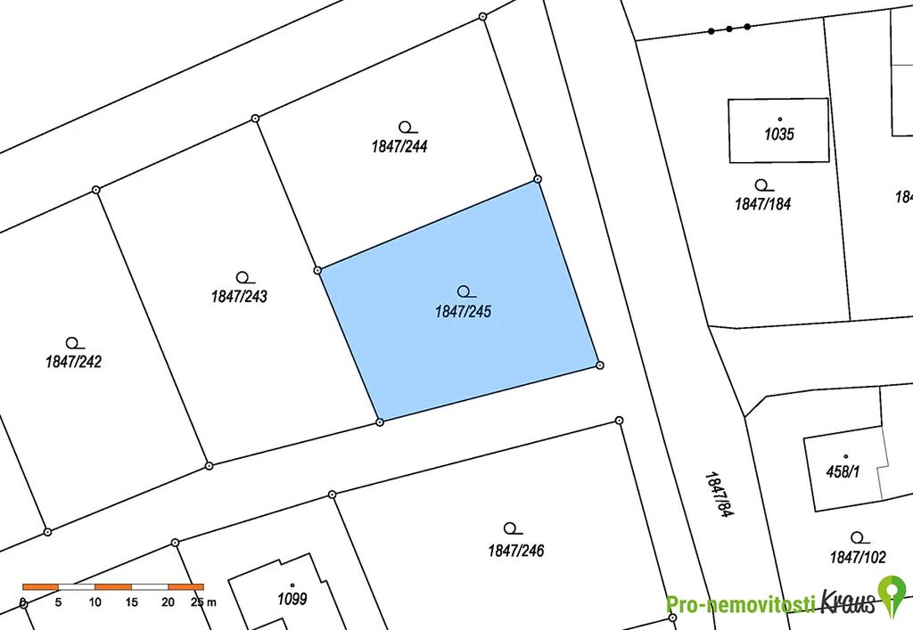 Pozemek dobře využitelného obdélníkového tvaru je mírně svažitý na jih a leží na okraji zastavitelného území obce v obytné zóně. Doslova pár desítek metrů od pozemku začínají hluboké brdské lesy. Provoz v ulici je minimální.
