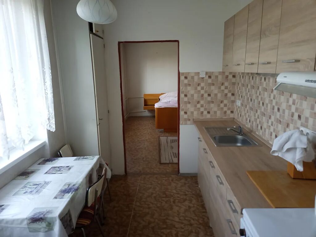 Vstup do bytu je řešen předsíní (chodbou) s šatní stěnou, dále navazuje vstup do kuchyně proti hlavním dveřím. Napravo je umístěné samostatné WC a samostatná koupelna se vstupem do technické místnosti s el.bojlerem na ohřev vody. WC je vyvýšené a vybavené madlem pro lepší stabilitu a sprchový kout disponuje sklopným sedátkem. Po obou stranách kuchyně jsou pak dva samostatné pokoje stejné velikosti sloužící jako obývací pokoj a ložnice. K bytu přináleží sklepní prostor o ploše 3,00 m2 a společné prostory.