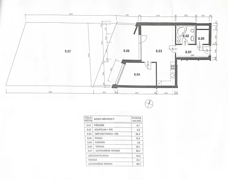 K bytu náleží skladová místnost o velikosti 5 m2 nacházející se vedle bytové jednotky.