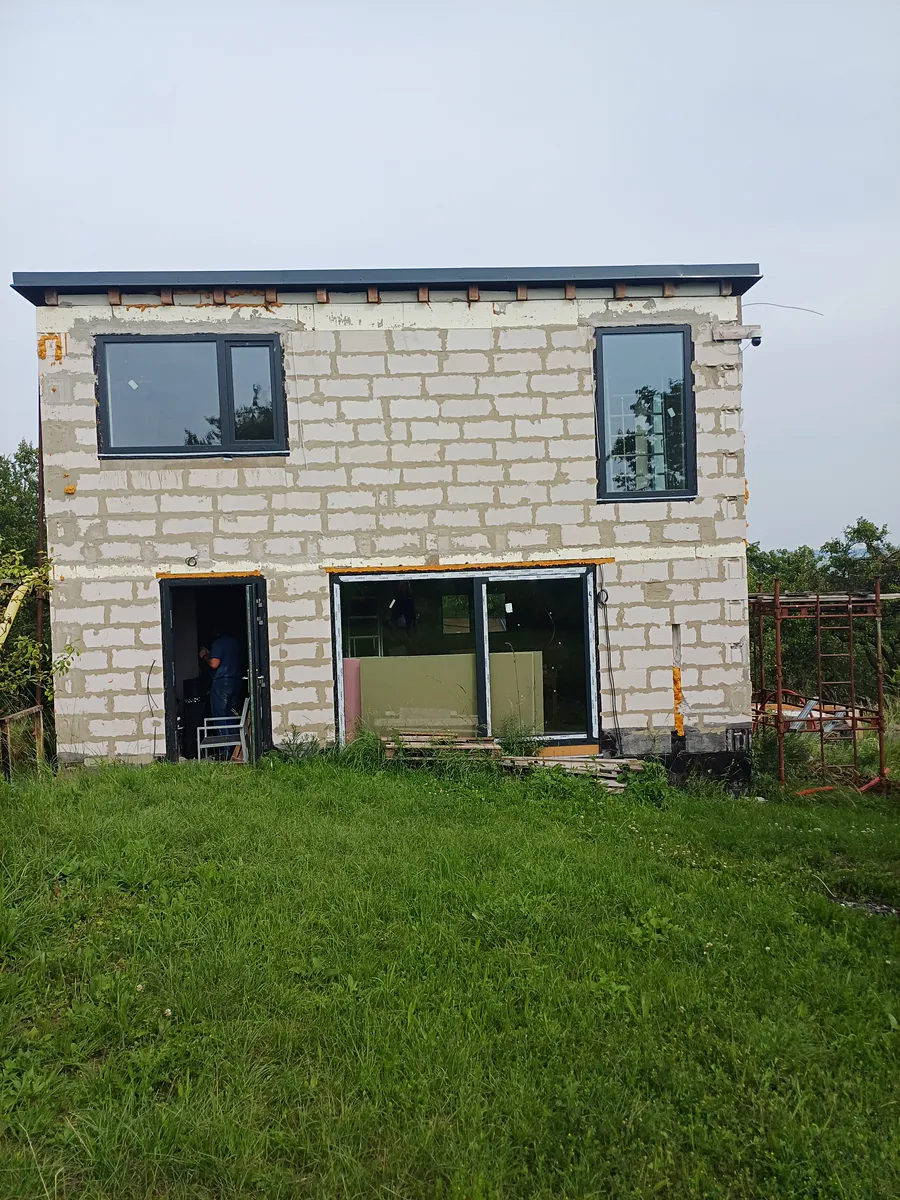 Nabízíme k prodeji zděnou chatu ve výstavbě ve Slavkově u Brna, umístěnou v chatové oblasti na severu Slavkova v blízkosti sochy sv. Jana Nepomuckého a Křížové cesty, přístupné ze serpentin po nezpevněné kamenité cestě až k hranicím pozemku. Chata byla postavena na pozemku v mírném svahu o výměře 756 m2 na základě platného stavebního povolení, ale nebyla dokončena. Chata má výměru zastavěné plochy 47 m2, půdorysný rozměr 5,78 x 8,19 m, je nepodsklepená, dvoupodlažní, napojená na elektřinu 3 fáze, odvodnění a splaškové vody prostřednictvím chemického wc, dešťové vody svedeny do akumulační nádrže na pozemku. Na pozemku se nachází spodní voda, možnost vyvrtání studny. Stavba je ve stavu dokončené hrubé stavby, s plastovými okny s trojsklem a rovnou střechou, místo schodů je výsuvný žebřík. Kompletní PD je k dispozici. Dispozice stavby: v 1.NP se nachází vstupní předsíň, koupelna s wc a obývací pokoj s kuchyní, ve 2.NP se nachází 2 pokoje a samostatné wc. V současné době je na pozemku umístěno venkovní wc, zahradní domek na nářadí a karavan, který je součástí kupní ceny. Karavan je umístěn u hranice pozemku, který je celý oplocen s příjezdovou branou. Karavan je kompletně vybavený včetně lednice, el. varné desky, čerpadla na vodu z akumulační nádrže, 3 lůžek a rozkládací sedačky. Chata se prodává ve stavu rozestavěnosti, kdy je nutné dokončit výstavbu dle pravomocného stavebního povolení, které bylo prodlouženo. Chata dosud není zapsaná v katastru nemovitostí. Po dobu dokončení výstavby bude karavan sloužit k zajištění zázemí, je zde zavedena elektřina, voda z akumulační nádrže. Chata se nachází nad Slavkovem v rekreační oblasti a neslouží k trvalému bydlení. Na zahradě se nachází ovocné stromy, švestky, třešně, hrušně, višeň, rodící olivovník, gdoule, živý plot je vysázen z bobkovišně obecné. Chata se nachází v zeleni, je odtud krásný výhled na okolí. Nabídková cena chaty umístěné na pozemku včetně karavanu a PD je 2,850.000,- Kč. Cena je k jednání.