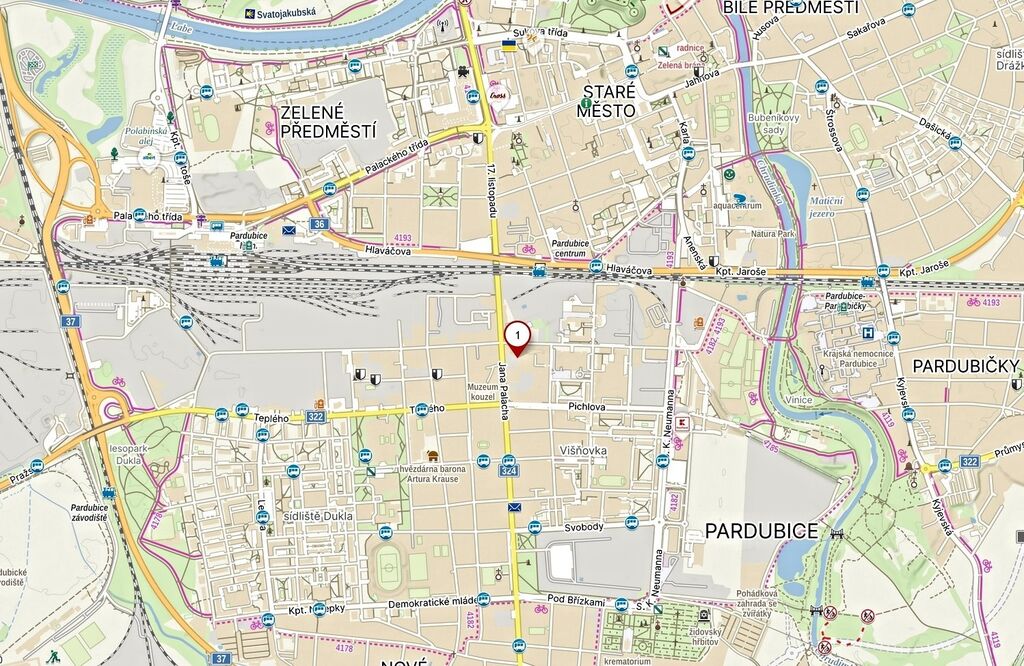 Širší centrum Pardubic, ulice Jana Palacha 234, výborná dostupnost autem i MHD.