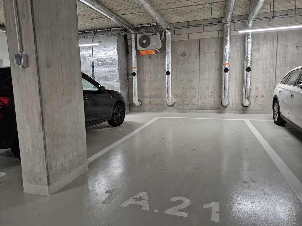 Parkovací stání a zděná sklepní kóje jsou situovány v přízemí bytového domu ve stejné sekci jako se nachází výtah k bytové jednotce, vše je tak dobře dostupné bez nutnosti pohybovat se po rozsáhlém objektu garáží.