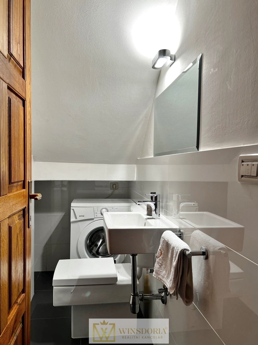 V přízemí se nachází útulný obývací pokoj, kuchyně s jídelním koutem a malá toaleta. V prvním patře jsou dvě ložnice a společná koupelna.