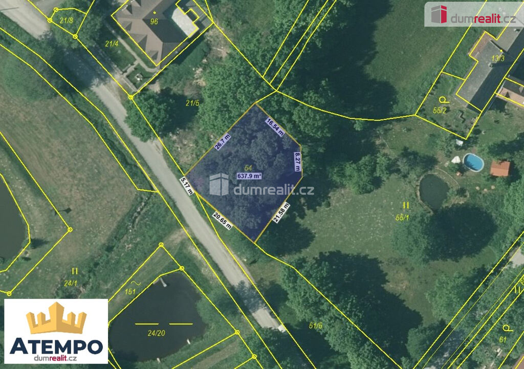 Dumrealit.cz Vám zprostředkuje prodej stavebního pozemku o výměře 634 m² v obci Nový Vojířov - část obce Nová Bystřice, okr. Jindřichův Hradec. Prodávaný pozemek je parc. č. 54, zapsaný na LV 641 v k.ú. Nový Vojířov. El. síť i vodovod je vedený u hranice pozemku. Dle územního plánu je pozemek vedený k výstavbě venkovského bydlení. Obec Nový Vojířov se nachází čtyři kilometry západně od Nové Bystřice, kde je veškerá občanská vybavenost. Mírně svažitý pozemek je situovaný na pěkném, klidném místě téměř v centru obce. Zajistíme Vám financování a veškerý právní servis. Více informací Vám poskytne realitní makléřka Martina Malkusová z realitní kanceláře A TEMPO fungující pod ochrannou známkou dumrealit.cz. Ev. číslo: 652901.