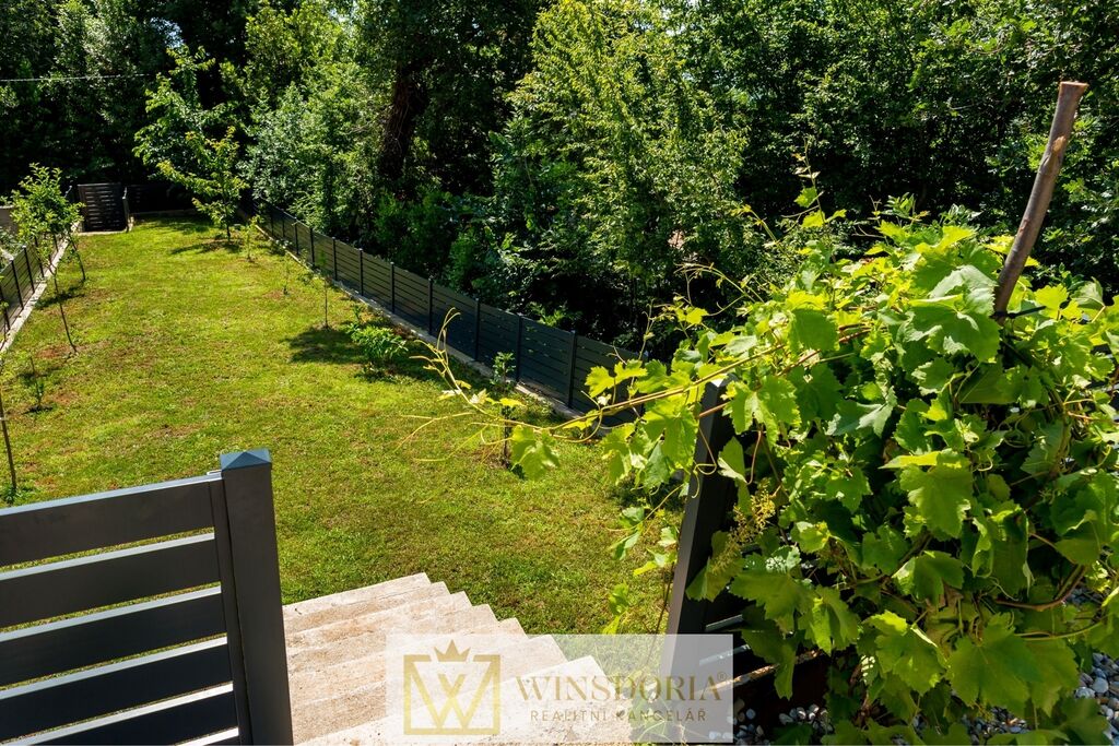 Klidná poloha obklopená zelení zaručuje soukromí, přesto je dům vzdálen jen pár minut od pláže, centra Lovranu a přibližně deset minut jízdy od Opatije.