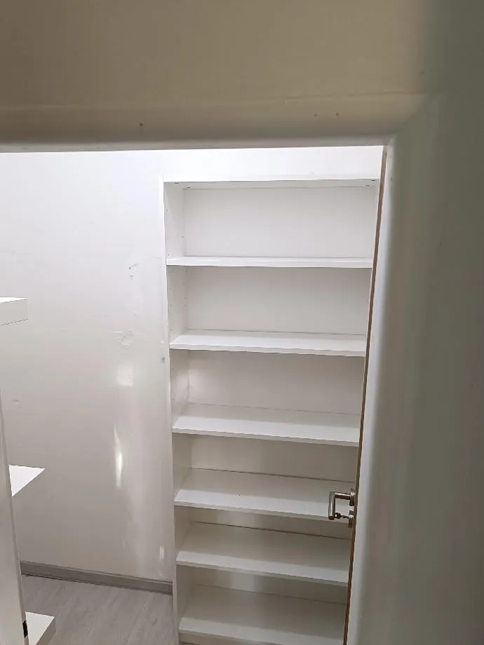 Dispozice bytu zahrnuje obývací pokoj s kuchyňským koutem, ložnicí a šatnou. Součástí kuchyňské linky je lednička a pračka.