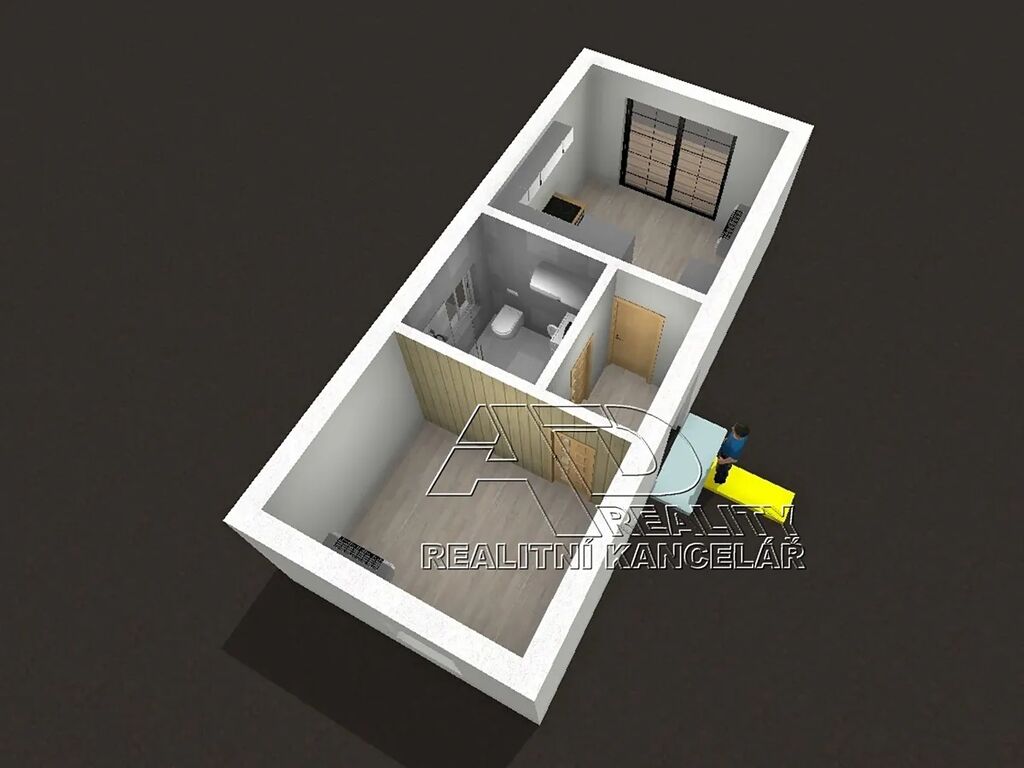 Celková plocha bytu 35m2, podlahová plocha [28m2] + terasa [7m2].