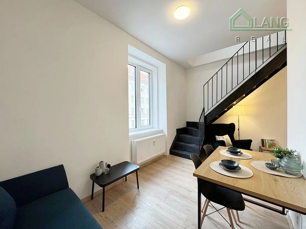 Nabízíme k prodeji moderní podkrovní mezonetový byt o dispozici 2+kk po celkové renovaci na rohu ulic Koliště a Křenová.