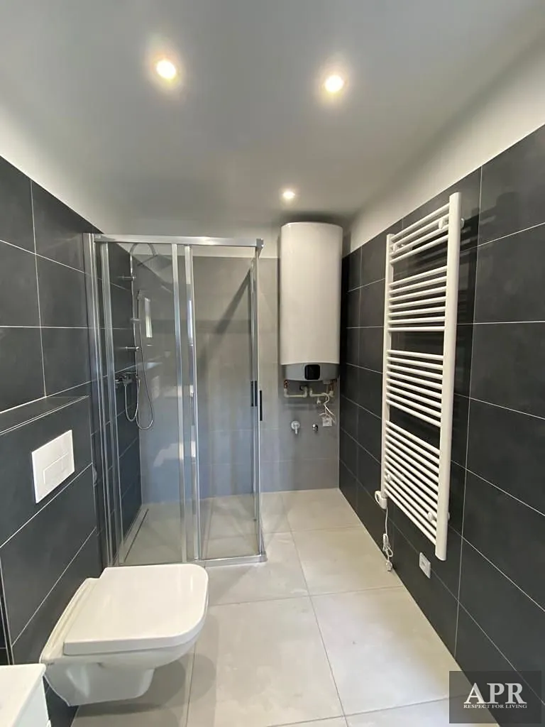 Nabízíme k pronájmu moderní byt 2+kk v kraji vína a vinic, uprostřed rozsáhlého lesoparku s parkováním a zahradou. Klimatizovaný z části zařízený byt s podlahovým topením, určený pro náročnější klientelu s perspektivou dlouhodobého bydlení. Prostor je vytápěný elektrickými celoplošnými fóliemi Heatflow, s nízkou spotřebou energie z karbonové tkaniny a nanotrubic. Systém Heatflow nahřívá celoplošně podlahu, která efektivně, sála do prostoru. Součástí prostoru je kuchyňská linka s indukční deskou, digestoří a vestavěnou troubou a lednicí. Koupelna je vybavena odvětrání, sprchovým koutem, WC, umyvadlem a topným elektrickým žebříkem. Možnosti připojení pračky. Ohřev TUV zajišťuje vlastní elektrický bojler Ariston o velikosti 60l – Funkce ECO / EVO ukládá vaše každodenní návyky, aby poskytl horkou vodu jen když ji potřebujete, což Vám umožní ušetřit energii a snížit náklady. Byt má vinylovou podlahu. Na oknech je stínící technika.