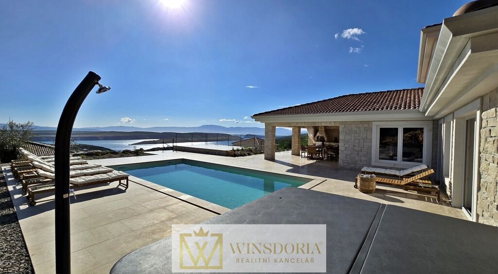 Celý interiér je klimatizován, vybaven tepelným čerpadlem s podlahovým vytápěním a stylovým krbem pro příjemné večery.